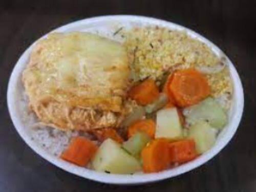 File Mignon acebolado com Shoyu Acompanha:*Arroz*Feijão*Purê de batata*Farofa*Salada